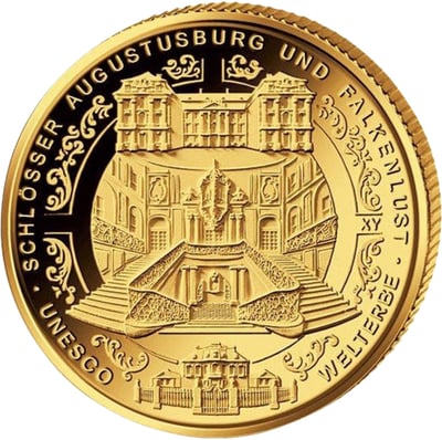 - Motiv: Das Motiv der Münze zeigt die prachtvollen Schlösser Augustusburg und Falkenlust in Brühl, zwei architektonische Meisterwerke aus dem 18. Jahrhundert.