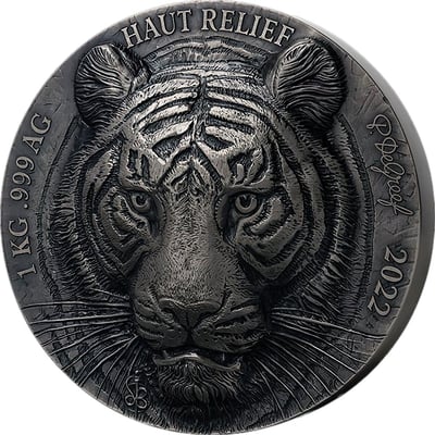 1kg Silber Mauquoy Tiger 2022 (Auflage: 199 | Antik Finish | High Relief)