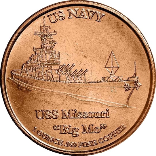Die 1 Unze Kupfermünze US Army USS Missouri wurde im Herzen der USA hergestellt. Diese Kupfermünze begeistert mit ihrer erstklassigen Qualität und ist nicht umsonst weltweit so begehrt. Lernen Sie den beeindruckenden Unterschied zu allen anderen Anlageprodukten kennen und überzeugen Sie sich von der fabelhaften und erstklassigen Produktionsqualität der 1 Unze Kupfermünze. Das Motiv der Münze zeigt das Kriegsschiff USS Missouri zusammen mit den Inschriften „US Navy“ in Großbuchstaben oben und „USS Missouri Big Mo“ unten. Auf der exklusiven Rückseite ist ein schöner Adler mit Schild, Pfeilen und Ölzweigen, welcher er in seinen Klauen trägt, abgebildet. Das Metallgewicht und die Reinheit erscheinen sowohl oben als auch unten. Fügen Sie jetzt dieses Symbol als spannende Geschichte der US-Armee jetzt in Ihre Kupfersammlung hinzu.