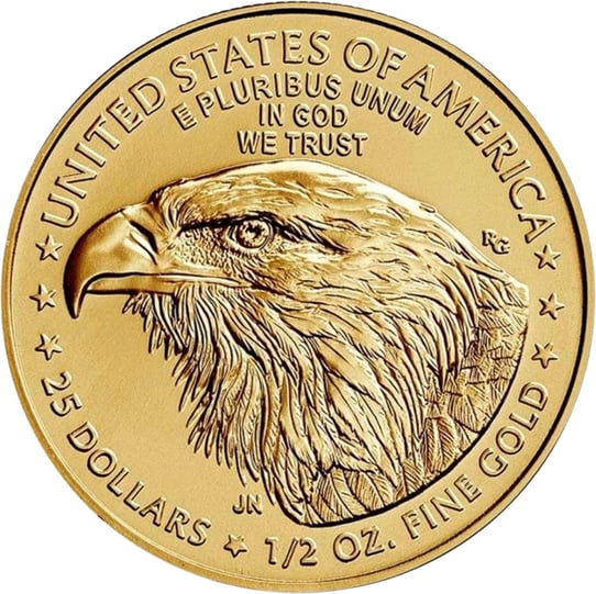 Seit der Erstauflage 1986 wurde die berühmte US-amerikanische Münze weder in Silber noch in Gold in ihrer Gestaltung verändert – bis 2021. Nach einem landesweiten Design-Wettbewerb stand schließlich Illustratorin Jennie Norris als Siegerin fest. Anhand eigener Beobachtungen von Weißkopfadlern in der Natur kreierte sie die neue Wertseite, die nun einen besonders detailreich geprägten Kopf des Tieres zeigt, der nach links blickt und unter dem die Initialen der Künstlerin eingraviert sind. Die weiteren Inschriften blieben unverändert: Sowohl „United States of America“ als auch die Wahlsprüche des Landes „e pluribus unum“ – „aus vielen eines“ – sowie das „Vertrauen in Gott“, „in God we trust“, sind auf der Münzseite erkennbar. Zudem wird der Nominalwert von 25 US-Dollar, das Feingewicht ½ oz sowie das Edelmetall „Fine Gold“ angegeben.