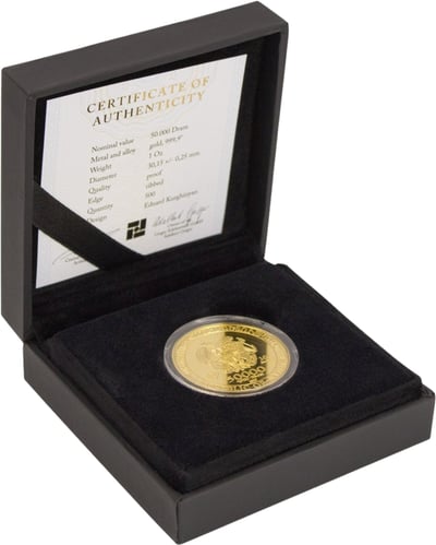 Die Münze wird in einem hochwertigen Etui geliefert und ist somit bestens geschützt. Ein Zertifikat bestätigt die Echtheit und den hohen Erhaltungsgrad der Münze. Sichern Sie sich jetzt diese streng limitierte Goldmünze und bereichern Sie Ihre Sammlung um ein exklusives Stück oder investieren Sie in ein Anlageprodukt mit hohem Potenzial.