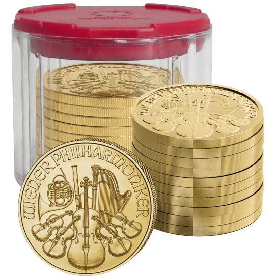 10 x 1 Unze Gold Wiener Philharmoniker 2026 (inkl. Münztube)