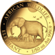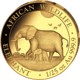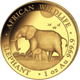 • Motiv: Zwei Elefanten in ihrem natürlichen Lebensraum, umrandet von den Schriftzügen "AFRICAN WILDLIFE", "ELEPHANT" und "1 oz Au 999.9"