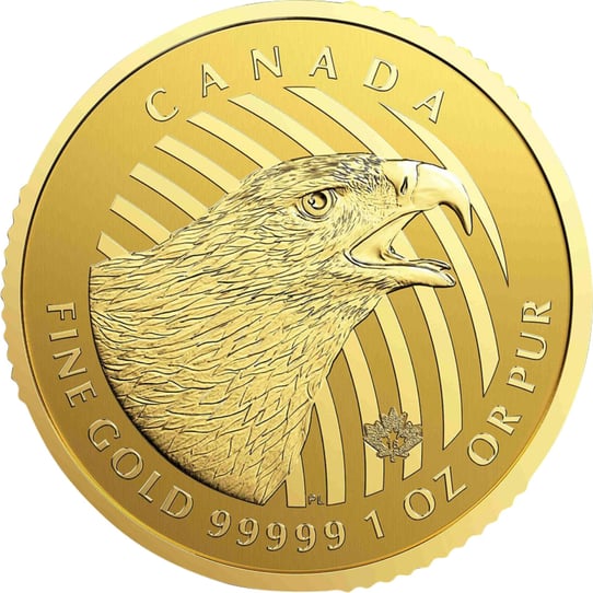 Motiv des goledenen Adlers wurde auf der World Money Fair 2018 vorgestellt und ziert die vierte Ausgabe der “Call of the Wild”-Münzserie.  Es war eigentlich geplant, dass kein Motiv mehr erscheint. Allerdings war mit mit dem Elch die letzte Münznachfrage der Serie noch so groß, dass sich die Hersteller kurzer Hand umentschieden noch ein neues Motiv in der Call of the Wild Serie zu publizieren. Die gesamte Serie ist aus Anlegersicht sehr spannend gestaltet. Die Royal Canadian Mint prägt alljährlich viele Sammlermünzen und Anlagemünzen mit den unterschiedlichsten Motiven, aber noch nie wählte sie für eine Goldanlagemünze ein Tier- bzw. Naturbild aus. Der Adler gehört neben dem Wolf und dem Puma bzw. dem Grizzly und dem Rothhirschen zu den typischen Vertretern der kanadischen Tierwelt. Das Motiv des Adlers wurde von Pierre Leduc entworfen, dessen Initialen “PL” nahe der Rundschrift auf Höhe von “oz” zu sehen sind. Pierre Leduc hat bereits den Grizzly, den Puma und den Wolf und Rothhirschen gestaltet, was auch bei der vierten Münze auf eine hohe Nachfrage hoffen lässt.  Die kanadische Münzprägestätte macht keine Angaben zur Auflagenhöhe – erst nach Beendigung der gesamten Serie und totalem Ausverkauf. Basierend auf den Erfahrungswerten der Maple-Leaf-Sonderedition “99999” und des Mountie ist jedoch anzunehmen, dass die dreiteilige Münzserie mit Sicherheit eine mittlere fünfstellige Auflage erreichen wird. Die Proof-Version ist nur auf 2.000 Stücke begrenzt. Die extravagante 1-Unzen-Goldmünze des Adlers ist gekapselt und in eine Blisterkarte (86×54 mm) eingeschweißt.