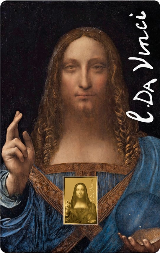 Feinstes Gold (999,9) trifft auf das berühmteste Kunstwerk der Welt - der Salvator Mundi von Leonardo da Vinci