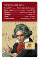 Vor dem Hintergrund handgeschriebener Notenblätter zeigt sich Ludwig van Beethoven in seiner charakteristischen roten Jacke. Die feine Detailarbeit lässt jede Nuance seines markanten Gesichts erkennen. Besonders beeindruckend: Im Hintergrund sind tatsächliche Notenzeilen seiner berühmten Kompositionen zu erkennen – ein künstlerisches Detail, das diese Rarität zu einem wahren Sammlerstück macht.