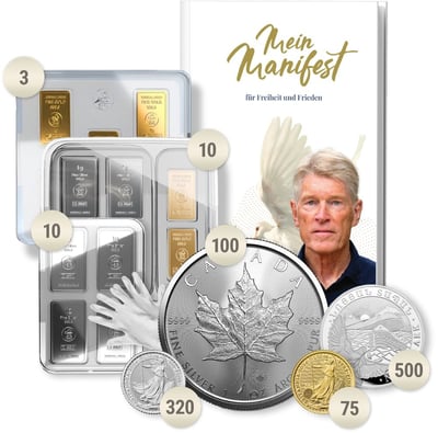 Das Vermögensschutz Paket XL bietet eine umfassende Lösung für alle, die ihr Vermögen ob vor Inflation, Kaufkraftverlust oder dem willkürlichen Zugriff, sobald der digitale Euro kommt, schützen und gleichzeitig in hochwertige Edelmetalle investieren möchten. Mit einer sorgfältig ausgewählten Mischung aus Gold- und Silberbarren sowie -münzen sind Sie bestens gerüstet, um den Herausforderungen der Zukunft gelassen entgegenzusehen.