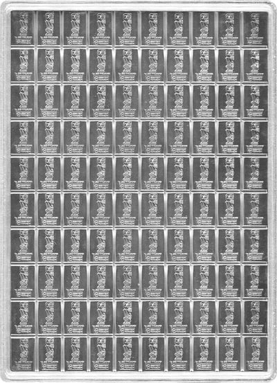 Flexibel teilbar dank CombiBar-Technologie: Die 100 einzelnen 1g-Silberbarren lassen sich ohne Werkzeug trennen - perfekt für kleine Transaktionen oder als praktische Krisenvorsorge