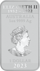 In der chinesischen Tradition sind Drachen Symbole von Kraft, Weisheit und Reichtum, die als mächtige und glückverheißende Kreaturen verehrt werden. Sie sind nicht nur faszinierende Gottheiten, sondern verkörpern auch die Macht des Kaisers. Auf der Rückseite wird das ikonische Abbild von Königin Elizabeth II. dargestellt, zusammen mit allen relevanten Informationen der Münze, darunter das Herkunftsland (Australien), das Gewicht (1 Unze), die Reinheit (999,9 Silber), das Prägejahr (2023) und der Nennwert (1 australischer Dollar).