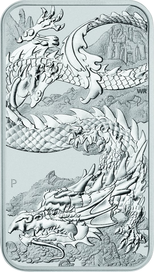 Lassen Sie sich von der mystischen Drachenwelt verzaubern, die sich in dieser beeindruckenden, rechteckigen Silbermünze offenbart. Diese einmalige Mischung aus Münze und Barren, geprägt von der renommierten Perth Mint, kombiniert die ästhetische Anziehungskraft eines Silberbarrens mit dem kulturellen Reichtum und der Anlageattraktivität einer Münze.