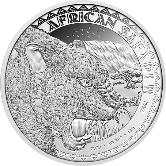 1kg Silber African Safari II Leopard 2023 (Auflage: 100 | Polierte Platte | Zertifikat Nr. 100)