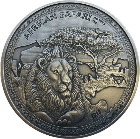 1kg Silber African Safari Löwe 2018 Antik Finish (Auflage: 100 | inkl. Holzbox & Zertifikat)