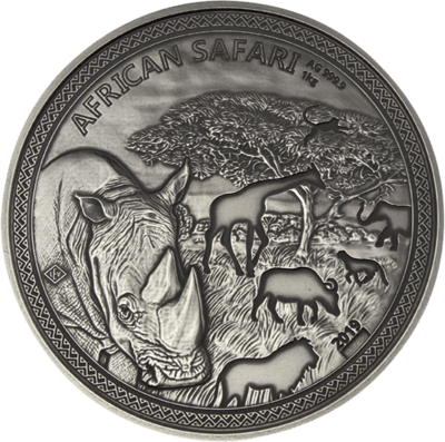 1kg Silber African Safari Nashorn 2019 Antik Finish (Auflage: 100 Stück)