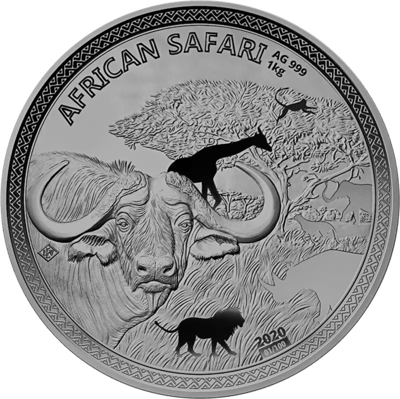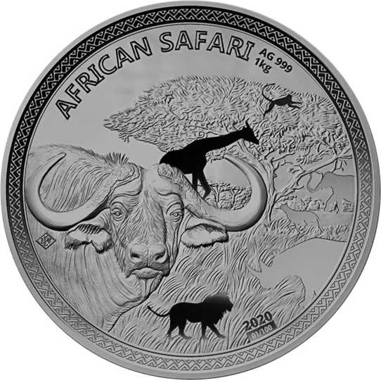 1kg Silber African Safari Büffel 2020 (Auflage: 100 | Antik Finish | Zertifikat Nr. 100)