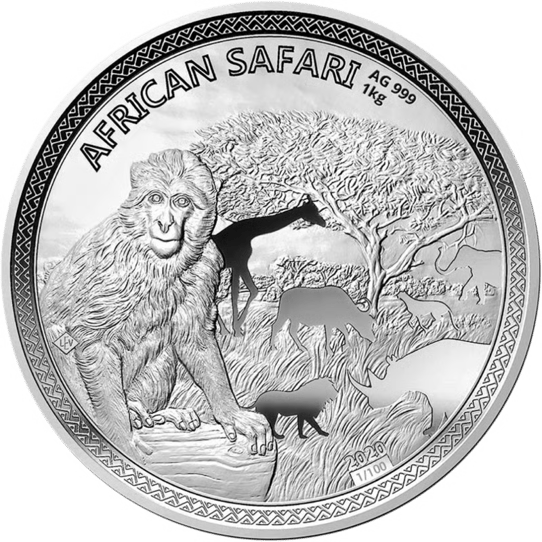 1kg Silber African Safari Affe 2020 (Auflage: 100 | Polierte Platte | Zertifikat Nr. 100)