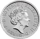Es ranken schon aus Tradition lange Geschichten und Interpretationen um die Britannia, die auf der Vorderseite dieser Silbermünze abgebildet ist. Sie ist eine Gottheit, die das Land mit Dreizack und Schild beschützt und gleichzeitig der Genius von Großbritannien. Auf der Vorderseite der Münze ist wie gewohnt die Landesmutter mit wehendem Gewand das Motiv. Diese Britannia ist stehend auf einer Klippe zu sehen und hält in der linken Hand hält ein Schild, das Nationalflagge Großbritanniens den “Union Jack” zeigt. Einen Olivenzweig hält sie ebenfalls in der linken Hand. Zur Rechten rechten hält die Britannia einen Dreizack, entsprechend dem Zepter des bekannten Meeresgottes Neptun. Auf dem Kopf trägt die Figur den typischen und gewohnten Helm. Der Hintergrund des Motivs besteht aus sehr feinen Mikrogravuren in Wellenform.