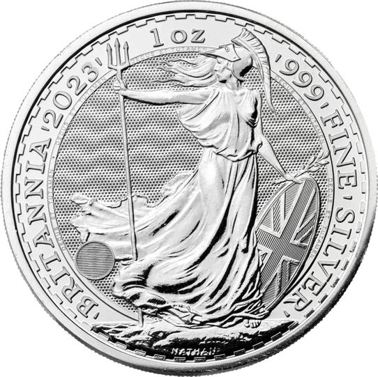Der Vorderseite dieser Silbermünze zeigt, wie der Name schon andeutet, die Britannia. Die Britannia war früher im Antiken Rom eine Göttin und wird heute eher als die Personifikation Großbritanniens und des britischen Volkes verstanden. Anhand ihrer Attribute ist sie sehr leicht zu identifizieren. Sie schaut zur Seite auf die hohe See und trägt einen schützenden Korinther-Helm. Ihr linker Arm ist weit ausgestreckt. In der linken Hand befindet sich ein Dreizack, den Sie zeigt, um ihre Macht zu demonstrieren und Angreifer zu warnen. Sie nimmt ihre Aufgabe, für die Sicherheit in Großbritannien zu sorgen, sehr ernst. Der rechts Arm ist eher nach hinten gestreckt. Mit der rechten Hand hält sie ein Schutzschild fest und einen Ölzweig. Damit möchte sie aussagen, dass sie auf Frieden aus ist und keinen Krieg möchte.