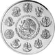 Die Silber Libertad Serie, zu der diese Münze gehört, ist weltweit bekannt und geschätzt. Die Münze zeigt auf ihrer Vorderseite einen detailreichen Aztekenkalender, während die Rückseite das Wappen von Mexiko ziert. Mit einem Durchmesser von 110mm und einem Feingewicht von 1.000g ist sie ein beeindruckendes Stück Silber.