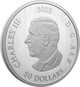 Die Vorderseite präsentiert das aktuelle Porträt von König Charles III., künstlerisch umgesetzt von Steven Rosati. Die Rückseite ziert das dreifache Ahornblatt-Motiv, ergänzt durch die Inschriften "CANADA", "FINE SILVER 5OZ ARGENT PUR" sowie die Feinheitsangabe "9999" und die Initialen "SW" des Künstlers.