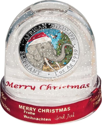 1 Unze Silber Somalia Elefant 2018 (in Schneekugel | coloriert): Ein Meisterwerk für Sammler und Investoren