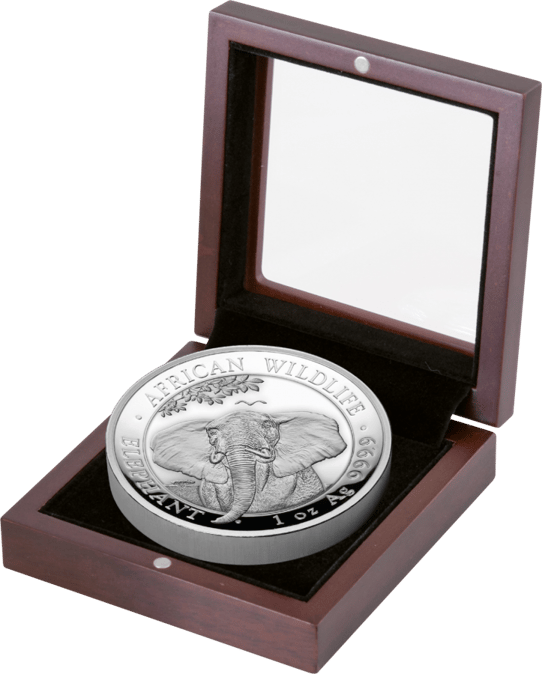 Der Somalia Elefant aus der „African Wildlife“-Serie zählt zu den schönsten Edelmetall-Münzen der Welt – und auf einer exklusiven Sonderprägung kommt das Tier noch prächtiger zur Geltung: Die „High Relief“-Variante des Somalia Elefant zählt mit einer Auflage von nur 1.000 Stück zu den seltensten Bullion-Produkten und hat sich zu einem gesuchten Sammlerstück entwickelt