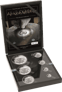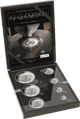 Das Set enthält sieben Münzen mit den Stückelungen 1/10 oz, 1/4 oz, 1/2 oz, 1 oz, 2 oz, 5 oz und 10 oz. Die drei kleineren Münzen wurden extra nur für dieses Set geprägt, was es zu einer noch größeren Rarität macht. Mit einem Gesamtgewicht von 18,85 Unzen reinem Silber ist dieses Set ein beeindruckendes Investment und Sammlerstück.