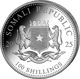 Auf der Rückseite (Revers) der Münze prangt das stolze Wappen der Republik Somalia. Das Wappen zeigt einen Schild, der von zwei Leoparden gehalten wird, und darüber befindet sich ein Stern. Der Nennwert der Münze beträgt 100 somalische Shilling, was jedoch deutlich unter dem tatsächlichen Wert des enthaltenen Silbers liegt. Diese Kombination aus kunstvoller Gestaltung und symbolischer Bedeutung macht die Münze zu einem begehrten Sammlerstück und wertvollen Anlageprodukt.