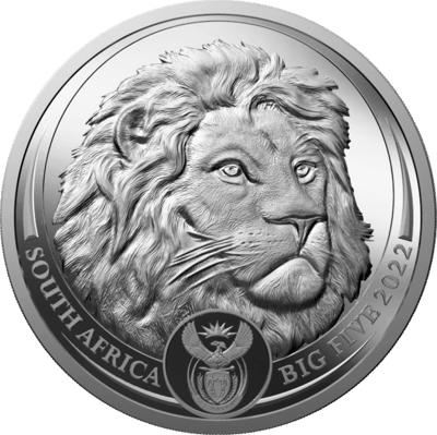 Die Münze ist ein Teil der "Big Five" Serie, die den majestätischen Löwen in seiner ganzen Pracht zeigt. Das Motiv zeigt eine detaillierte Nahaufnahme vom Kopf eines ausgewachsenen Löwen. Die Aufschriften "SOUTH AFRICA", "BIG FIVE 2022" und das südafrikanische Wappen sind ebenfalls Bestandteil des Designs. Die Rückseite zeigt zwei Hälften eines Löwenkopfes. Platziert man zwei dieser Münzen nebeneinander, erhält man ein vollständiges Nahaufnahmeporträt eines Löwen.