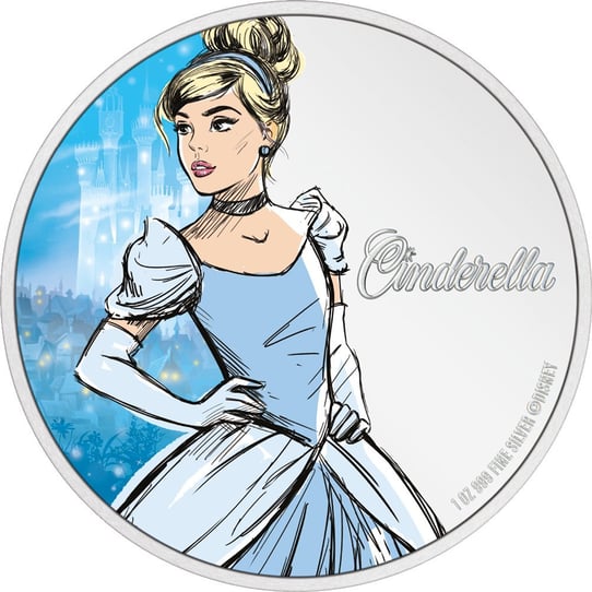 Diese Münze ist offiziell von Disney™ lizenziert und zeigt Cinderella™ in einer Szene, die direkt aus dem klassischen Film von 1950 stammt. Die detailreiche Darstellung von Cinderella™ in ihrem wunderschönen Ballkleid und das prächtige Märchenschloss im Hintergrund machen diese Münze zu einem echten Hingucker. Der Schriftzug „Cinderella“, das Gewicht, die Feinheit und das Copyright vervollständigen das Design und unterstreichen die Authentizität dieser wertvollen Münze.
