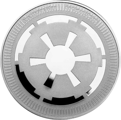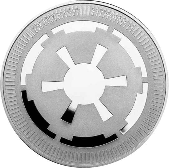 Die neue Silberanlagemünze widmet sich dem Imperiale Wappen des Galaktischen Imperiums. Nachdem der Sith-Lord und oberste Kanzler Palpatine das erste Galaktische Imperium ausrief, gestaltete er das bestehnede Wappen mit dem 8-Speichenrad um. Das neu gestaltete Wappen ziert nun ein sechsspeichiges Rad, welches das gefürchtetste und mächtigste Imperium repräsentieren sollte. Die Ähnlichkeit zum alten Wappen sollte Akzeptanz und Vertrauen schaffen aber auch einen klaren Übergang zur neuen Ordnung markieren.
