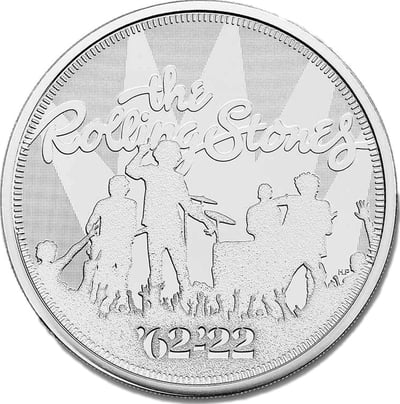 Nach all den Jahren ist die Band immer noch aktiv. Sie touren weiterhin und bringen auch immer noch neue Songs raus. Im Laufe der Zeit wurden allerdings ein paar Bandmitglieder ausgetauscht. Auf dem Motiv dieser Silbermünze sind die Schatten von Mick Jagger, Keith Richards, Charlie Watts und Ron Wood zu sehen. Darunter steht das Gründungsjahr der Band sowie das Jahr, in dem die Münze hergestellt wurde (2022).