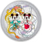Exquisites Design: Farbenfrohe Darstellung von Mickey und Minnie mit Drachen, geprägt in feinstem 999er Silber in Polierter Platte