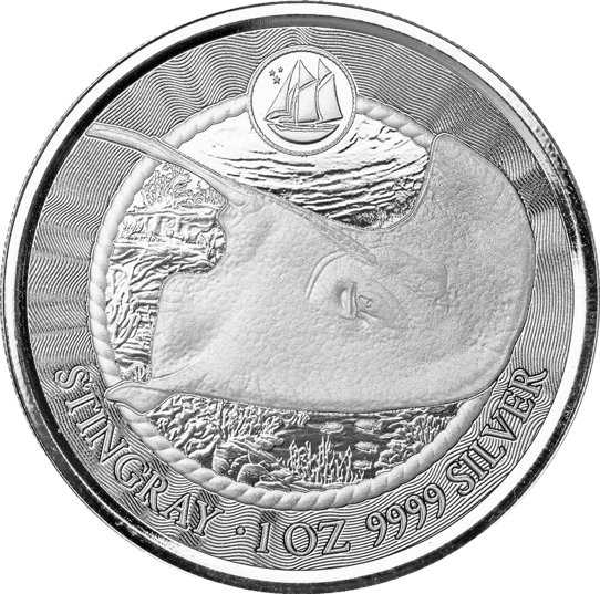 Entdecken Sie den Glanz der Meereswelt: 1 Unze Silber Cayman Islands Stachelrochen 2023