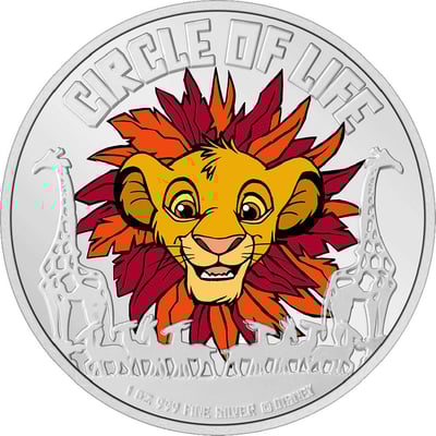 1 Unze Silber 30 Jahre König der Löwen – Circle of Life 2024 (Auflage: 1.994 | coloriert | Polierte Platte)