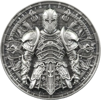 Die "50g Silber AI Knight 2024" Münze besteht aus reinem Silber mit einer Feinheit von 999/1.000. Das Gewicht von 50 Gramm und der Durchmesser von 38,60 mm machen sie zu einem beeindruckenden Stück, das sowohl durch seine Größe als auch durch seine Qualität besticht. Die High Relief Prägung sorgt für eine besondere Haptik und Optik, die jeden Betrachter in ihren Bann zieht.