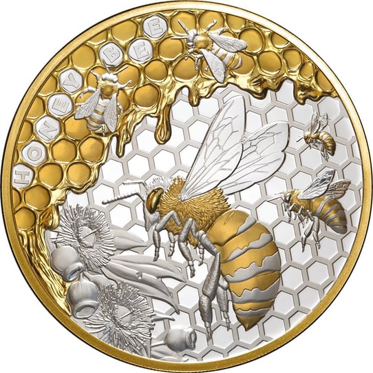 Teilvergoldetes Design: Die detailreiche Darstellung der Honigbiene und der Wabenstruktur, veredelt mit feinstem Gold, macht diese Münze zu einem unvergleichlichen Kunstwerk