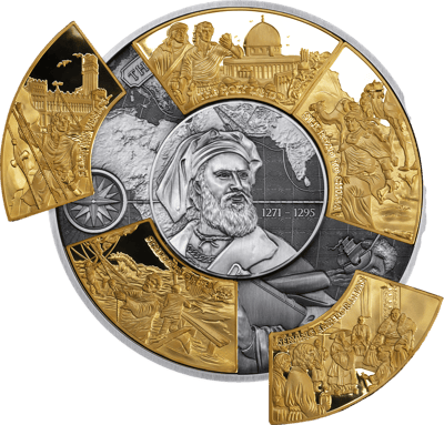 Die Münze besteht aus fünf kunstvoll gestalteten Puzzleteilen, die zusammen ein beeindruckendes Gesamtbild ergeben. Im Zentrum steht das detaillierte Porträt Marco Polos (1271-1295), umgeben von den wichtigsten Stationen seiner legendären Reise. Die teilweise Vergoldung mit 24-karätigem Gold verleiht der Münze zusätzliche Eleganz und Wertigkeit.