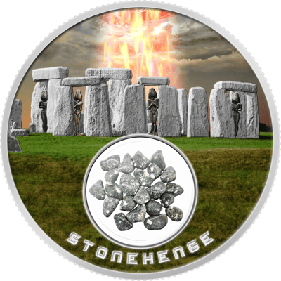 Echtes Stonehenge-Gestein: Diese einzigartige Silbermünze enthält original Preseli-Blaustein aus Wales - dasselbe Material, aus dem das mystische Stonehenge erbaut wurde