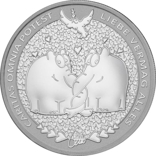 Caritas Omnia Potest - Liebe vermag alles. Diese zeitlose Botschaft macht die Münze zu einem perfekten Geschenk für besondere Anlässe wie Hochzeiten oder den Valentinstag.