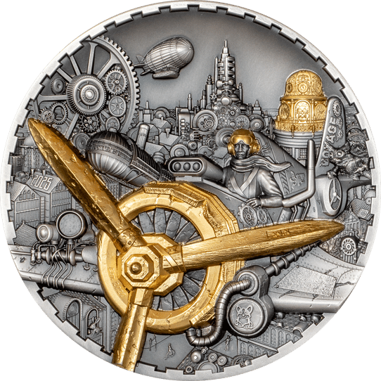 Steampunk Aviation 2025: Meisterwerk der Münzkunst mit spektakulärer High Relief Prägung
