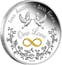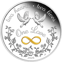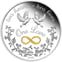 Das Herzstück dieser außergewöhnlichen Münze bilden zwei turtelnde Tauben – seit Jahrhunderten das universelle Symbol für Liebe und Treue. Umrahmt von einem kunstvoll gestalteten Blütenkranz aus Blumen und Blättern, schweben sie über einem goldenen Unendlichkeitssymbol, das die Ewigkeit der Liebe repräsentiert. Die mehrsprachigen Aufschriften "two hearts", "two lives" und "One Love" unterstreichen die internationale Botschaft dieser besonderen Prägung.