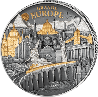 Atemberaubende High Relief Prägung mit Teilvergoldung und über 20 europäischen Wahrzeichen