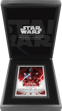 Das rechteckige Format der Münze mit den Maßen 82,00 x 58,00 mm ist eine Hommage an das klassische Filmposter und stellt eine Besonderheit unter Star Wars-Münzen dar. Durch das hohe Feingewicht von 155,50 g und die Feinheit von 999/1.000 wird diese Münze zu einem wertvollen und langlebigen Sammlerstück.