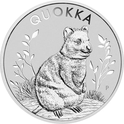 Die Vorderseite dieser einzigartigen Silbermünze zeigt ein lächelndes Quokka, ein kleines Wallaby aus der Familie der Kängurus. Umgeben von Gräsern und Sträuchern, erweckt das Design den Geist Australiens zum Leben. Die Inschrift "QUOKKA" und das traditionelle Mintmark "P" der Perth Mint ergänzen das Bild.