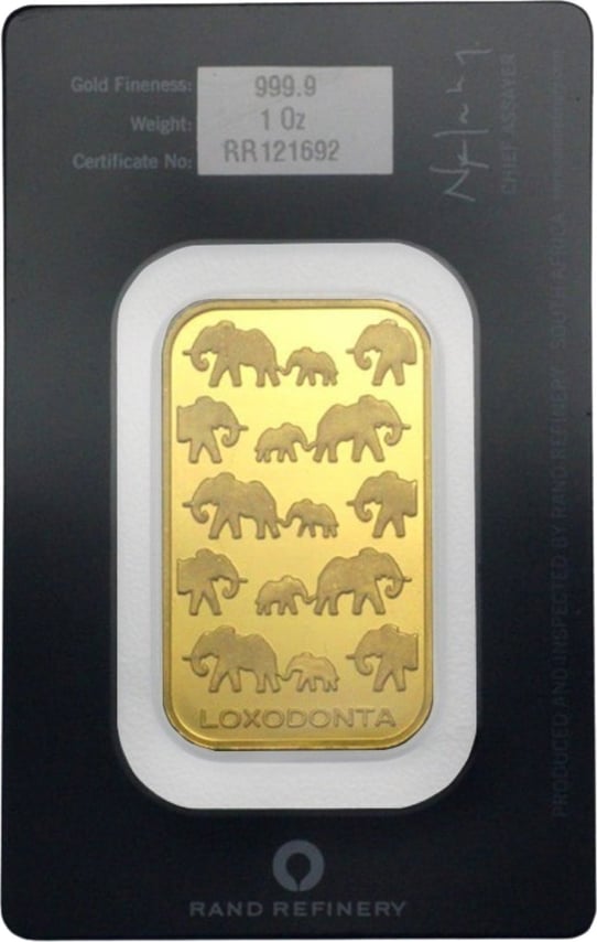 1 Unze Elefanten Goldbarren (Rand Refinery)