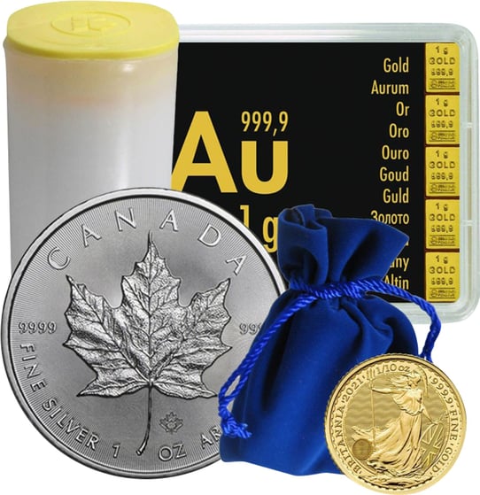 Vielseitiges Edelmetall-Set: Diversifizierte Auswahl mit Silber Maple Leaf, Gold Britannia und Combibarren