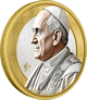 Meisterhafte Veredelung: Hochwertige Teilvergoldung und brillante Kolorierung verleihen dieser 1 Unze Silbermünze mit dem Porträt des Papstes eine besondere Strahlkraft