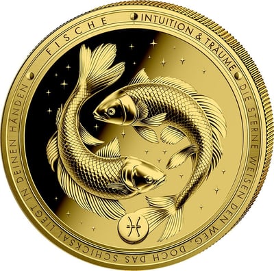 Reinstes Gold 999,9: Dieses numismatische Meisterwerk aus feinstem Gold bietet Sammlern und Fische-Geborenen ein einzigartiges Stück mit echtem Wertsteigerungspotential