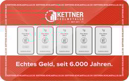 - 5 hochwertige 1g-Silberbarren (999,9 Feinheit) in praktischer Kartenform