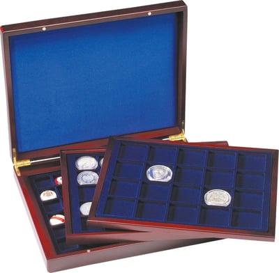 Münzkassette Volterra Trio de Luxe mit eckigen Fächern (mit 30mm, 39mm, 48mm Ø)